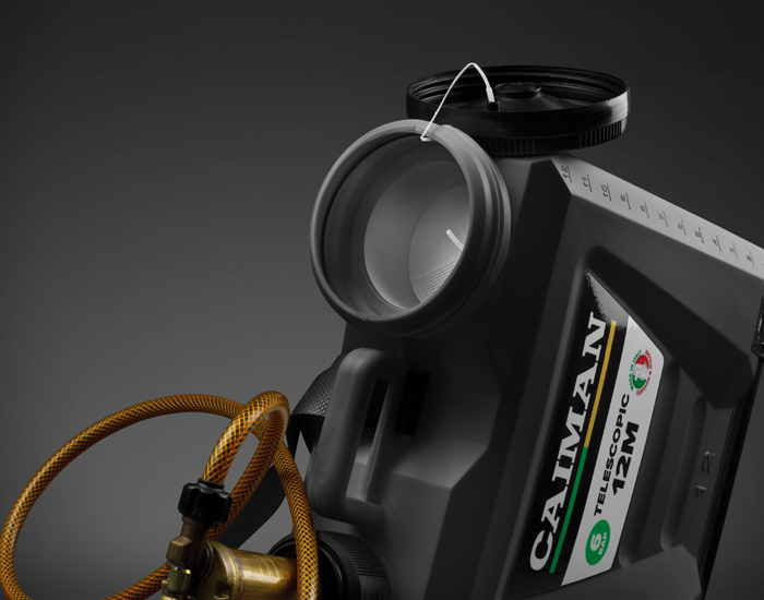 - Бак из устойчивого пластика Titanium Robust. Профессиональные опрыскиватели Caiman Telescopic 12 имеют большой бак емкостью 12 литров, выполненный из особого пластика Titanium Robust, устойчивого к особо агрессивным жидкостям. Бак имеет большую заливную горловину с фильтром, предотвращающего засорение емкости.