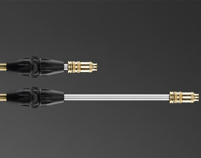 - Телескопическая насадка в латунном корпусе общей длиной 110 см. Позволяет оператору находиться на безопасном расстоянии от обрабатываемого объекта, а также дотягиваться до труднодоступных мест, обрабатывать небольшие плодовые деревья.