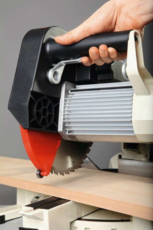 - Конструкция JMS-10S лишена и другого слабого звена – механической передачи – нет ни ремней, ни зубчатых колес, пильный диск установлен непосредственно на вал двигателя. Благодаря такому конструктивному решению пила имеет одинаковую предельную глубину пропила как под прямым углом, так и с наклоном 45º: в обоих случаях она составляет 60 мм.