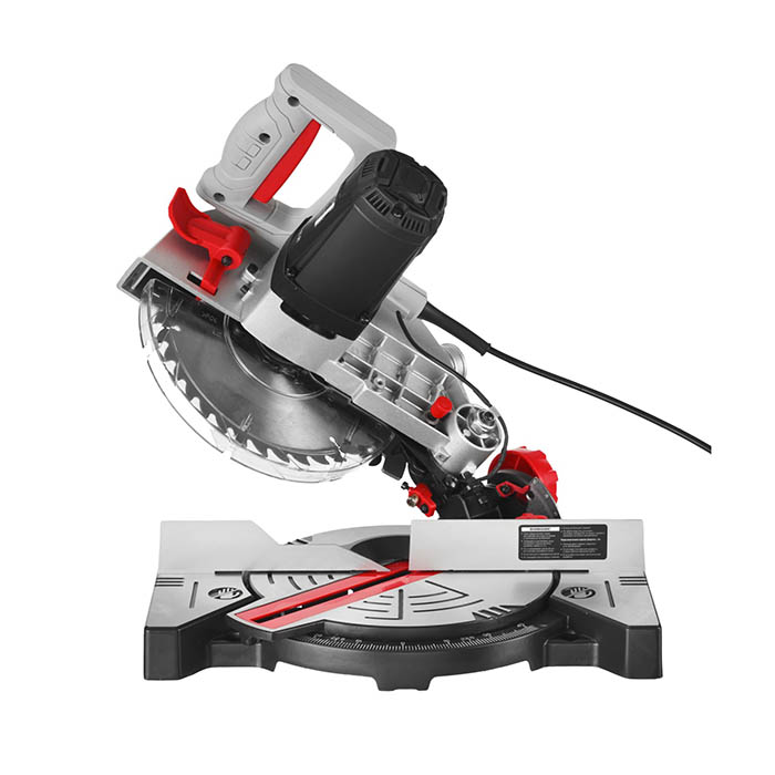 - Щеточный электродвигатель. Двигатель торцовочный пилы работает от бытовой сети 230 В. Чем мощнее пила, тем выше ее производительность, то есть количество выполненной работы за единицу времени. Но слишком мощный инструмент, как правило, обладает большими габаритами, что усложняет работу.