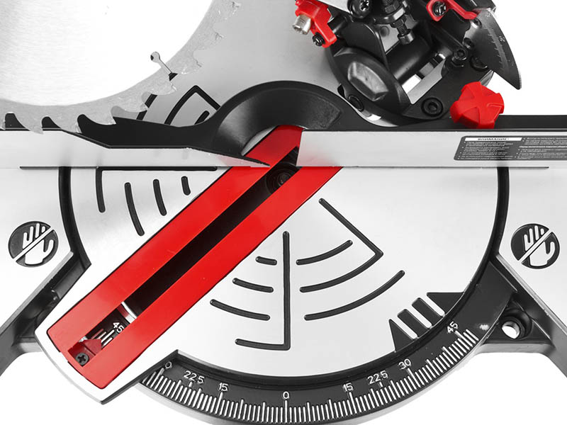 - Наклон пильного диска. Головка пилы наклоняется влево, с дополнительным угловым диапазоном для подреза.