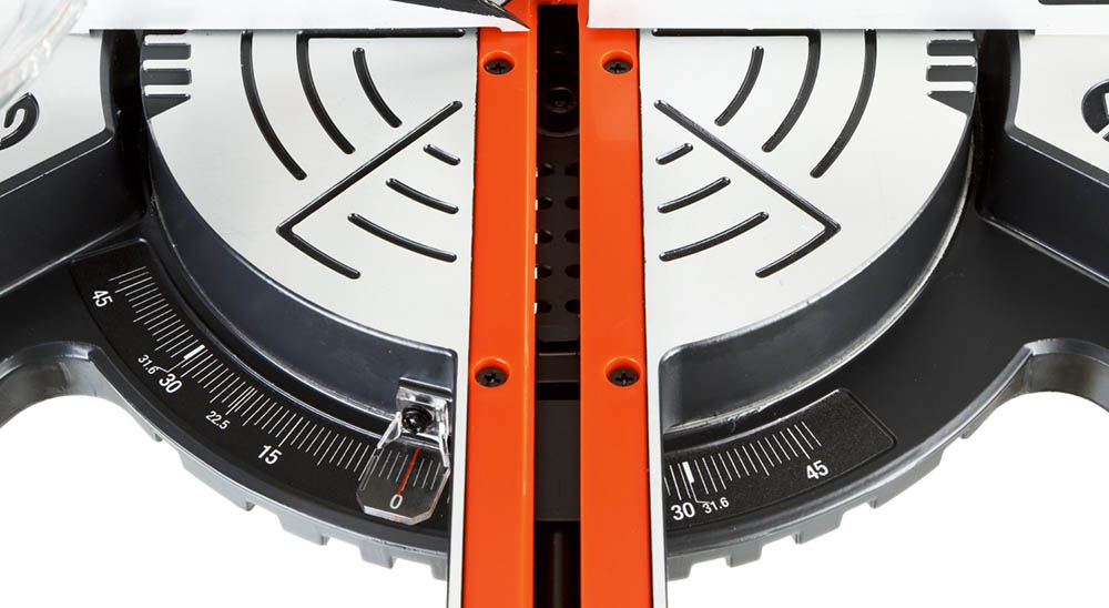 - Наклон пильного диска. Головка пилы наклоняется влево, с дополнительным угловым диапазоном для подреза.
