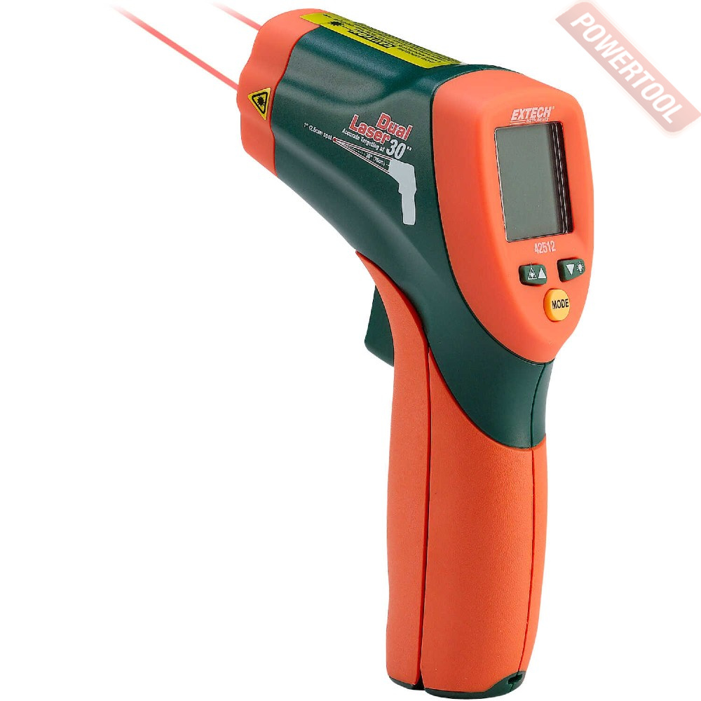 Бесконтактный инфракрасный термометр, диапазон от -50 до 1000 градусов С, базовая точность 1 процент плюс 1 градус С, разрешение 0,1 градуса С, оптическое разрешение 30 к 1, коэффициент теплового излучения регулируемый от 0,1 до 1, спектральная чувствительность от 8 до 14 мкм, двойной лазерный целеуказатель, время отклика 0,15 с, отображение max значений и функция Hold, звуковая сигнализация при превышении установленного предела Т, выбор единиц С/F, режим блокировки для непрерывных измерений, индикация выхода за рабочий диапазон, питание от батареи 9В типа Крона, отключаемое автоотключение через 7 с, габариты 146х104х43 мм, вес 0,163 кг.