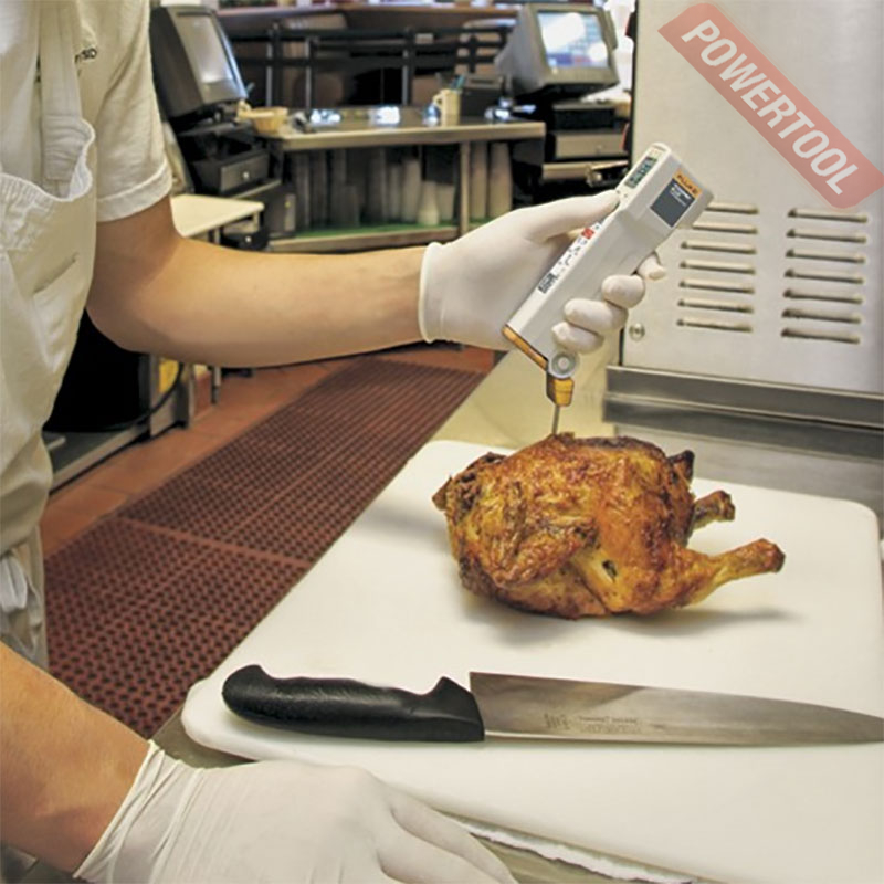 Пирометр FLUKE FP Plus - предназначен для контроля температуры пищевых продуктов объединяет в одном корпусе два точных термометра: специально откалиброванный бесконтактный инфракрасный термометр и откалиброванный резисторный термометр с зондом. Бесконтактный режим можно использовать для быстрого сканирования поверхностной температуры, тогда как режим зонда применяется для точного изменения внутренней температуры продуктов.