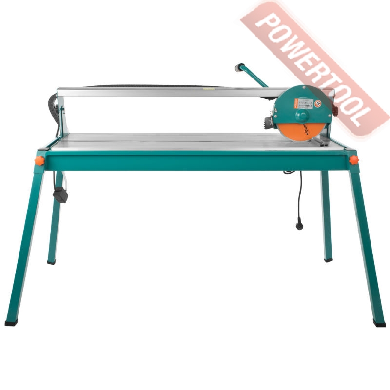 Плиткорез электрический с верхней направляющей, 1200 Вт, 220 В, диск 230х25,4 мм, 2950 об/мин, мах длина реза 920 мм, мах глубина реза при 90/45 градусах 48/38 мм, угол реза 90/45 градусов, система водяного охлаждения диска, объем ванной 15 л, размер рабочего стола 1170x394 мм, размер ДхШхВ 1360x560x385 мм, вес 31,6 кг, угольник, опорные ноги, диск по керамограниту.