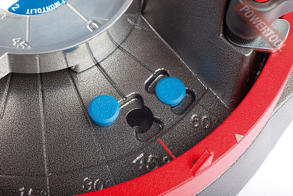 - Станок оснащён профессиональной линейкой с двумя шкалами. Вращение линейки от -45 до +45 градусов и мгновенная фиксация под заданным углом с помощью специального рычага.