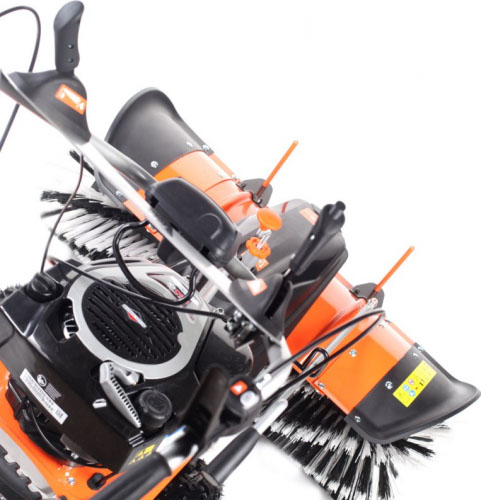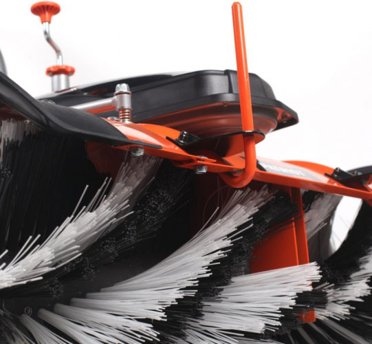 - Благодаря дополнительному навесному оборудованию (контейнер для мусора, скребок для снега) можно расширить функции подметальной машины.
