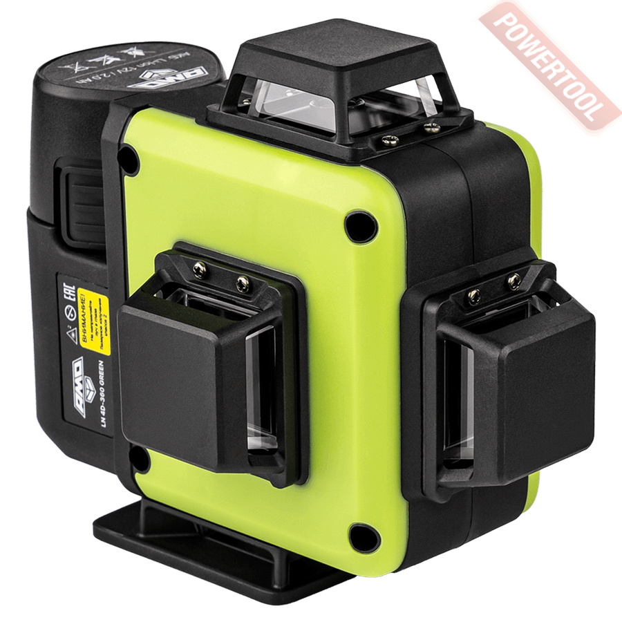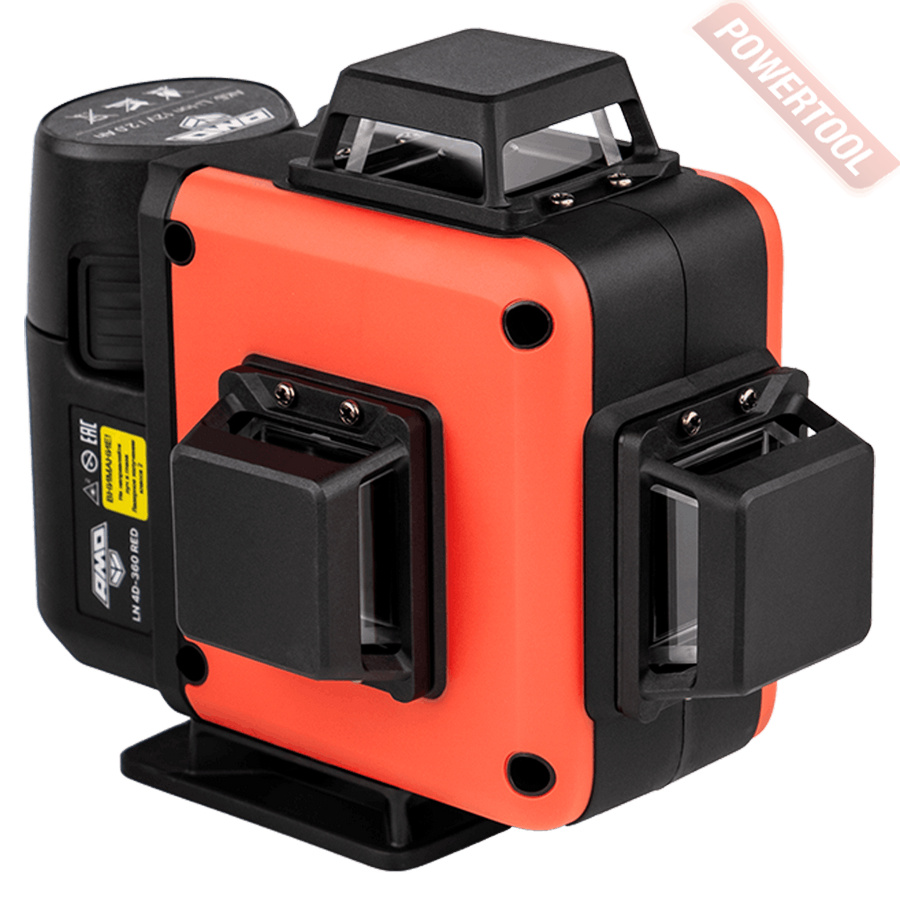 - Построение лазерных линий. Проецирует одну горизонтальную и четыре вертикальные линии, а также снабжён лазерным отвесом. Четыре вертикальные линии, пересекающие горизонтальную плоскость, образуют перекрестия со всех сторон прибора, которые вы можете использовать для самых разных целей – повесить картину, приклеить плитку, разметить стену под прокладку коммуникаций, и так далее. Удобная панель управления позволяет включать как все линии одновременно, так и по отдельности. Мембранные кнопки не допускают скапливания пыли и грязи, что немаловажно при работе на строительной площадке.