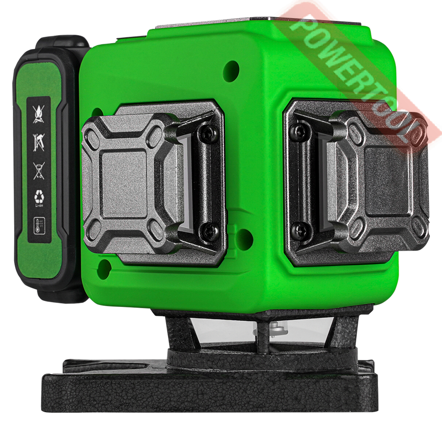 • Построение лазерных линий. Проецирует одну горизонтальную и четыре вертикальные линии, а также снабжён лазерным отвесом. Четыре вертикальные линии, пересекающие горизонтальную плоскость, образуют перекрестия со всех сторон прибора, которые вы можете использовать для самых разных целей – повесить картину, приклеить плитку, разметить стену под прокладку коммуникаций, и так далее. Удобная панель управления позволяет включать как все линии одновременно, так и по отдельности. Мембранные кнопки не допускают скапливания пыли и грязи, что немаловажно при работе на строительной площадке.