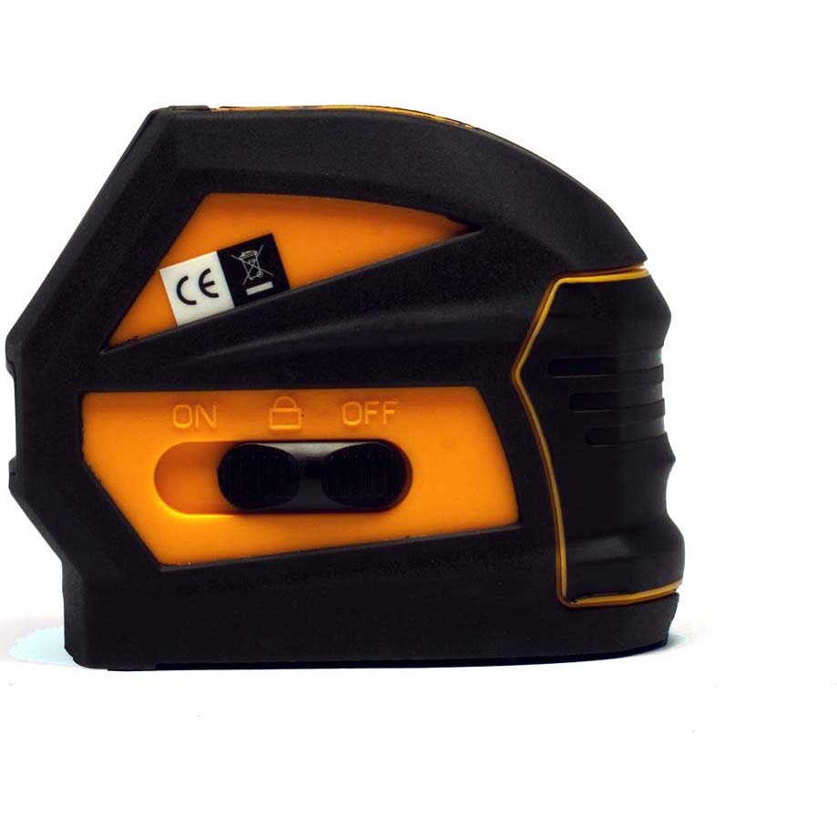 - Построение лазерных линий. Cтроит лазерный крест, либо горизонталь или вертикаль по отдельности - в зависимости от выбранного режима. Угол горизонтальной развёртки 120 градусов, вертикальной - 100 градусов. Переключение между режимами осуществляется при помощи кнопки.