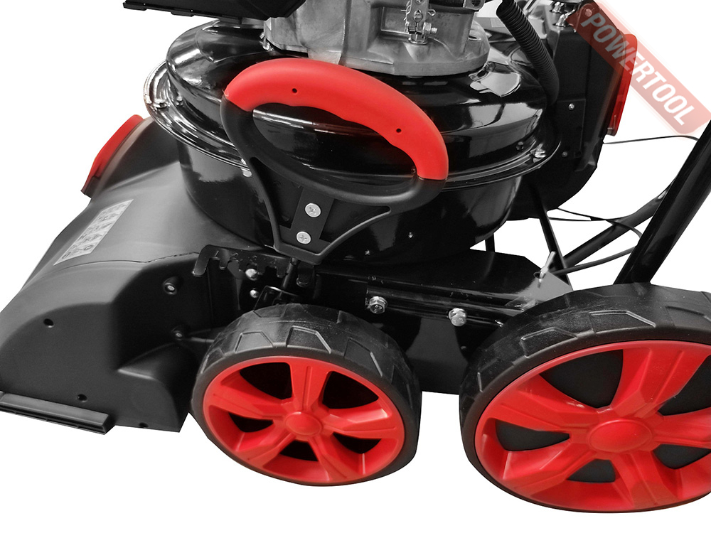 Пылесос садово-парковый колесный, расход воздуха 1080 куб.м/ч, ширина захвата 58 см, центральная регулировка высоты 5 положений в диапазоне 15-60 мм, скорость потока воздуха 270 км/ч, 4-х тактный бензиновый двигатель Loncin LC1P65FE-2 объемом 166 куб.см и мощностью 4 л.с., топливный бак 1 л, ёмкость картера 0,5 л, скорость движения 3,4 км/ч, привод на задние колеса, мусоросборник 150 л, вес 38 кг, мешок для сбора мусора, вспомогательный шланг, роликовая щетка.