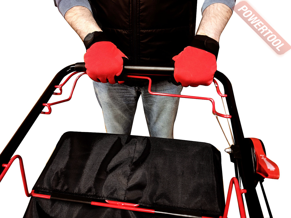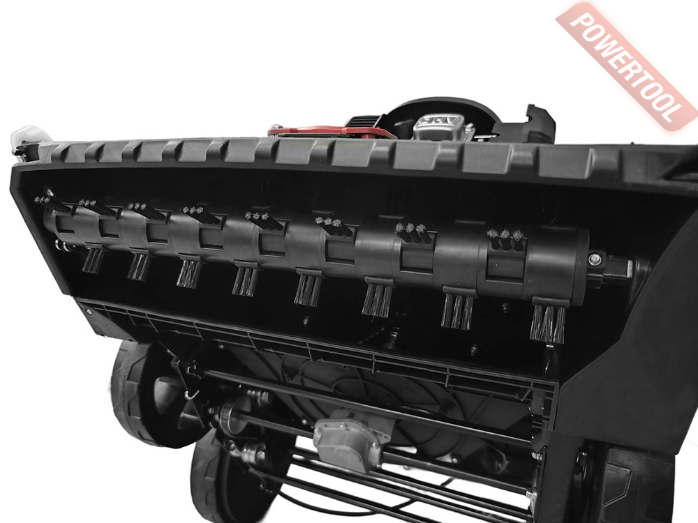 • Входящий в комплект вал с щётками, имеет привод, включаемый рычагом на рукоятках. Такая конструкция позволяет приподнимать, например, мокрую листву с дорожек, что обеспечивает более высокое качество очистки территории.