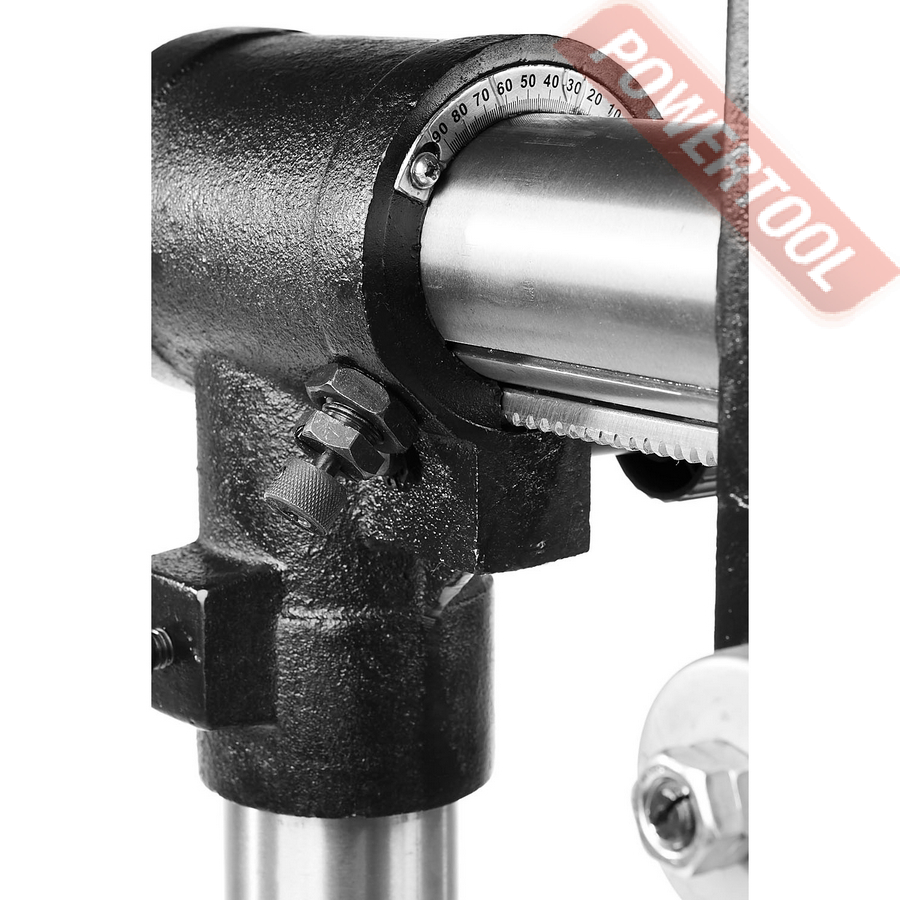- Регулируемый наклон сверлильной головки позволяет выполнять сверление под углом.