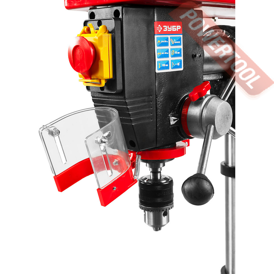 - Прозрачный кожух для защиты оператора от стружки при сверлении.