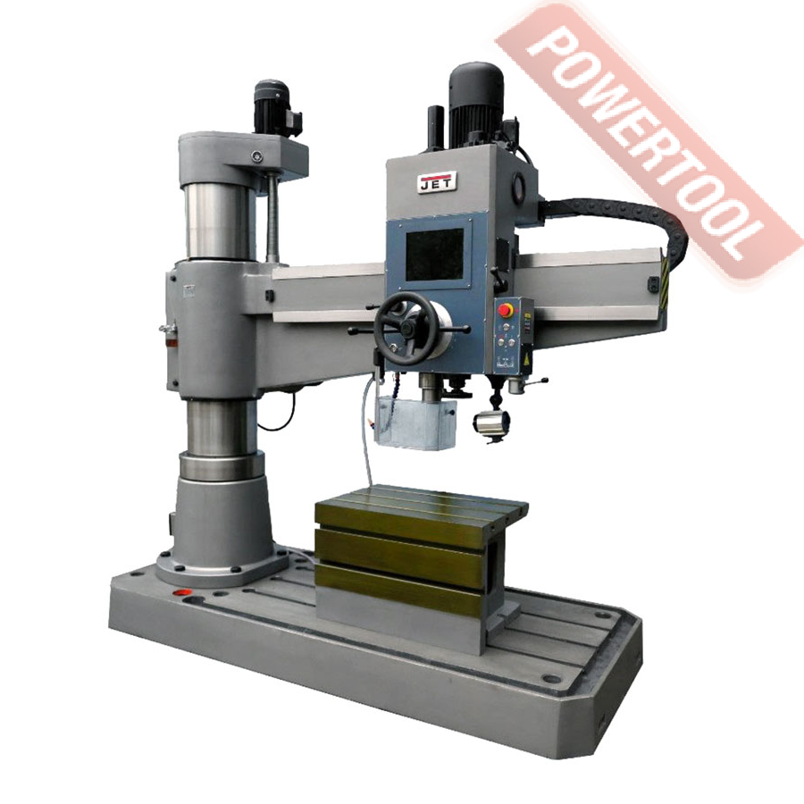 Радиальный сверлильный станок по металлу JET JRD-1600 DRT представляет собой современную и модифицированную модель промышленного оборудования подобного типа, выпускаемого компанией JET. Это аналог советских станков моделей 2А55, 2А554, 2В56, 2М55, 2Н55, 255, ГС545. Станок рассчитан на работу в промышленных условиях, для выполнения как единичных, так и серийных работ по обработке массивных заготовок больших размеров. Модель JRD-1600DRT имеет все необходимые технические возможности для сверления отверстий больших диаметров, производить расточные работы и нарезание резьбы.