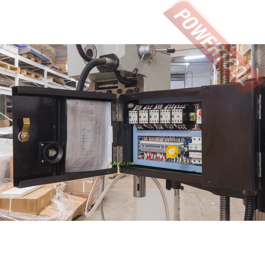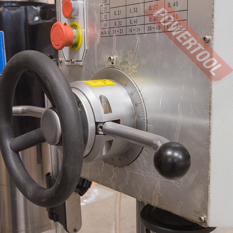 Радиальный сверлильный станок, 1500 Вт, 380 В, max диаметр сверления 40 мм, max нарезаемая резьба M27, частота вращения шпинделя 75-1220 об/мин, 6 передач, бесступенчатая регулировка оборотов, автоподача пиноли с диапазоном 0,1-0,25 мм/об, конус шпинделя КМ-4, ход пиноли шпинделя 240 мм, вылет шпинделя 820 мм, шпиндель-стол 515 мм, шпиндель-основание 880 мм, диаметр стойки 200 мм, размер основания 1370х700 мм, перемещение головки по оси X 760 мм, размер стола 400х400 мм, подсветка рабочей зоны, габариты 1407х720х1885 мм, вес 1140 кг, в комплекте система СОЖ 750 Вт, защитный экран, набор инструментов, коробчатый стол, рабочая лампа.