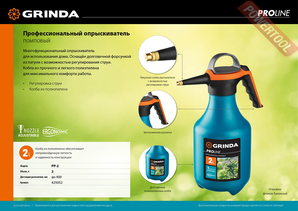 - 1. Распылитель ручной GRINDA PP-2.