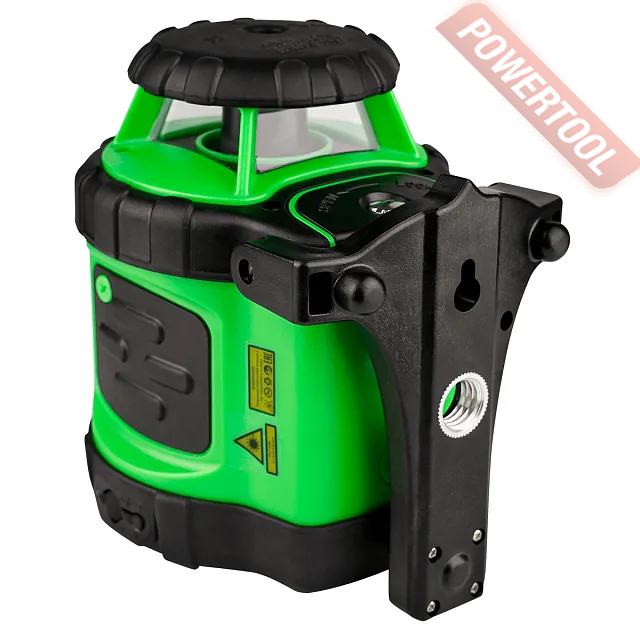 Пузырьковый уровень позволяет ровно установить устройство на поверхности или штативе. Благодаря дополнительному резьбовому отверстию, можно изменить положение прибора, закрепив его на боку. Сразу после включения ротационный нивелир автоматически переходит в режим самовыравнивания. В случае превышения допустимых пределов отклонения, включается звуковой сигнал.