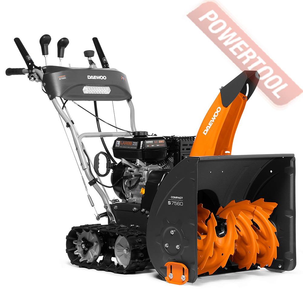 Снегоуборщик гусеничный самоходный DAEWOO S 7560 оснащен мощными двигателями OHV последнего поколения и предназначен для уборки и очистки дорог и других ровных твердых поверхностей от большого количества снежных масс, удаления снежных завалов, расчистки загородных участков дорог от выпавшего и наметенного снега, а также уборки снега с городских улиц и тротуаров, приусадебных участков и загородных домов. Агрессивный зубчатый шнек легко собирает даже плотные слои сне га, гусеничный ход увеличивает проходимость