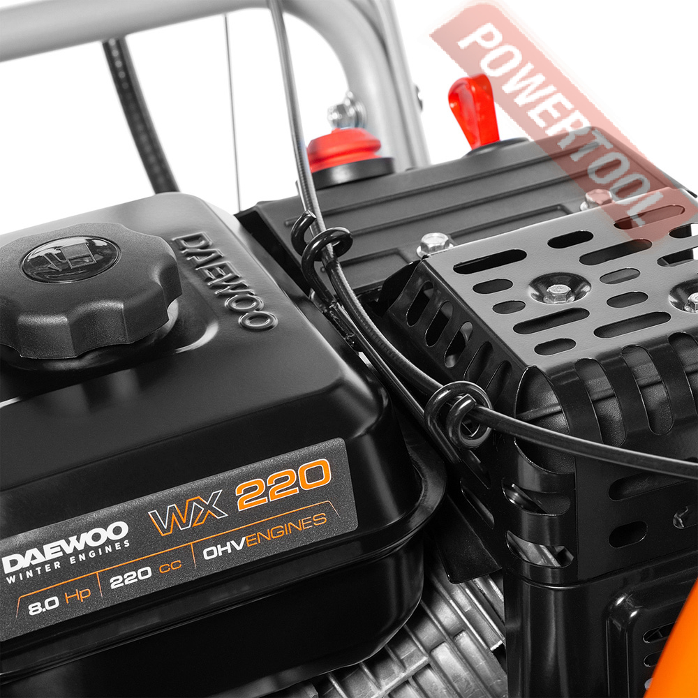 - Двигатель DAEWOO зимней серии WX 220. Уверенный запуск при отрицательных температурах. Повышенный моторный ресурс. Увеличенный глушитель и сниженный уровень шума. Увеличенный до 3,6 литров топливный бак.