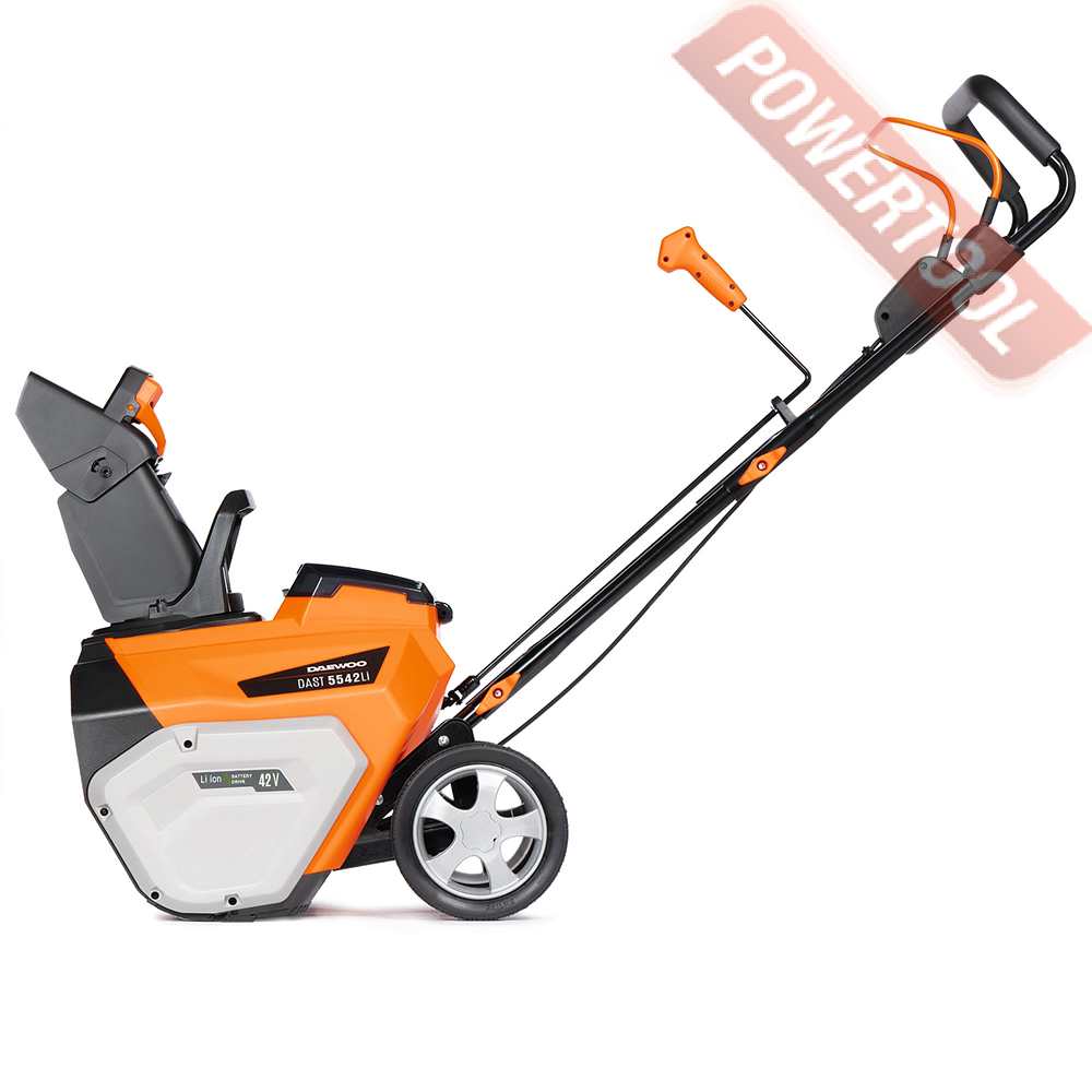 Снегоуборщик колесный аккумуляторный DAEWOO Dast 5542Li Set специально разработан для использования при низких температурах в зимнее время и предназначена для уборки и очистки ровных твердых поверхностей от снежных масс, снежных завалов, расчистки загородных участков и дорог от выпавшего и наметенного снега.