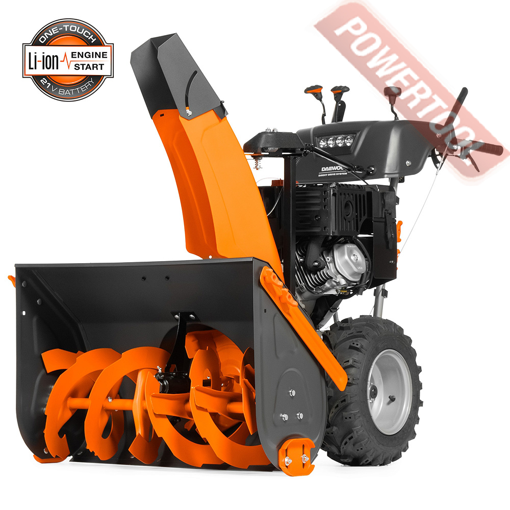 • Легкий запуск снегоуборочной машины обеспечивается благодаря наличию электрического стартера, работающего от сети 220 Вольт. Таким образом, для того чтобы воспользоваться стартером, нужно просто подключиться к электрической розетке и нажать соответствующую кнопку.