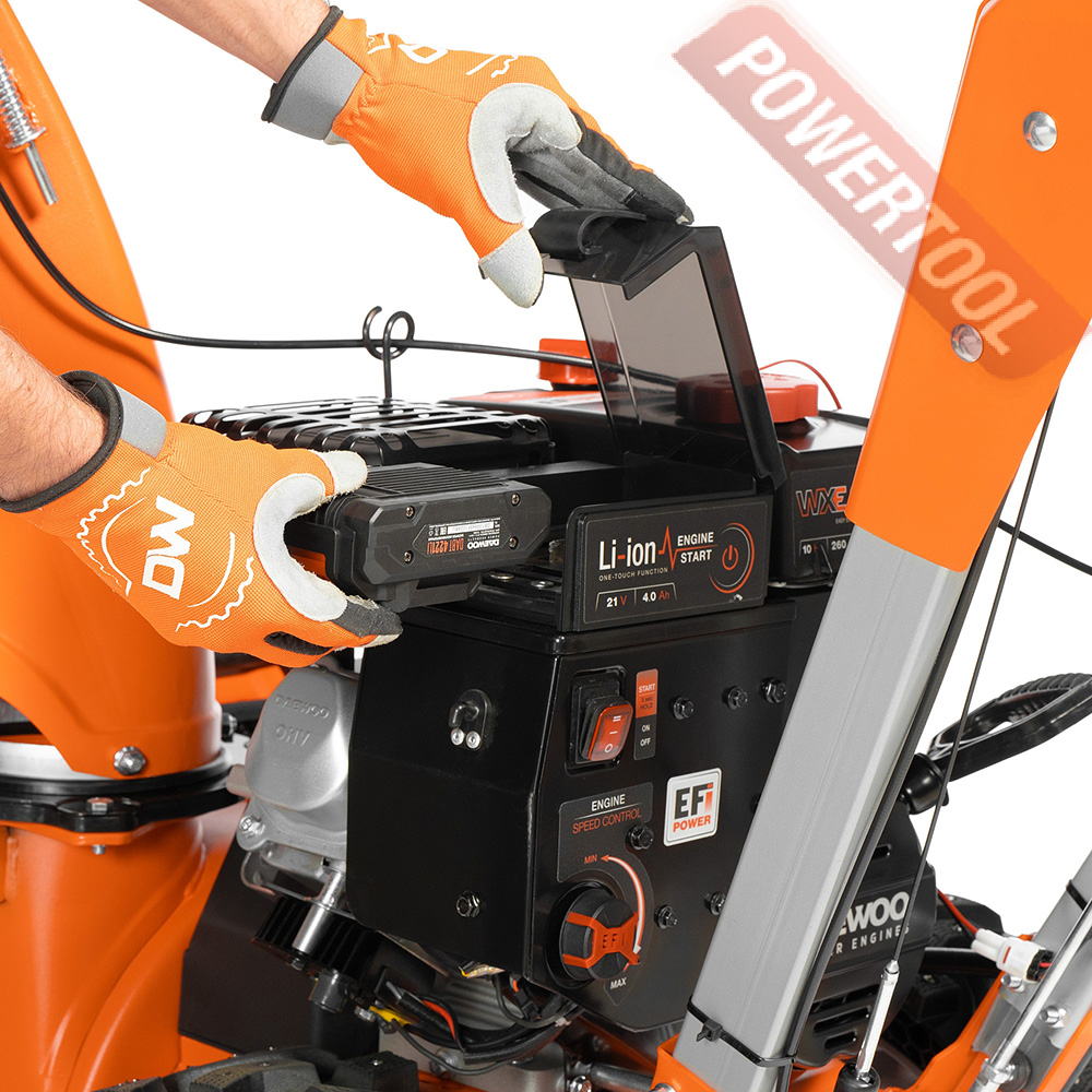 - WXE 300 EFI инжекторный двигатель DAEWOO. Инновационный двигатель WXE 300 EFI с системой непосредственного впрыска топлива разработан специально для снегоуборщиков. Обладает увеличенной до 25 процентов мощностью и сниженным до 20 процентов расходом топлива по сравнению с карбюраторными моделями.