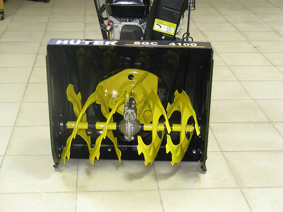 Снегоуборщик колесный самоходный HUTER SGC 4100 предназначен для расчистки как свежевыпавшего, так и уже слежавшегося снега. Машина оборудована мощным 4-тактным двигателем, ширина обработки за один проход позволяет эффективно и качественно расчищать от выпавшего снега небольшие дорожки или территорию возле загородного дома. Снегоотбрасыватель имеет двухступенчатую систему выброса снега: снег, попавший в ковш измельчается и подаётся зубчатым шнеком на крыльчатку с лопастями, которые вращаясь выбрасывают измельченный снег через патрубок в заданном оператором направлении. Наличие двух ступеней, зубчатого металлического шнека и высокоскоростной крыльчатки,позволяет разрыхлять даже слежавшийся снег.