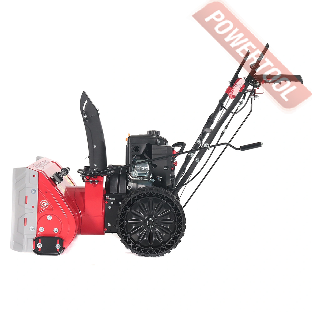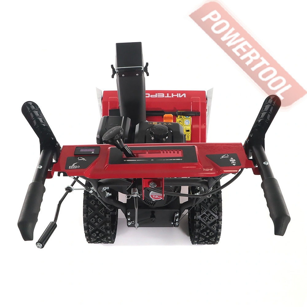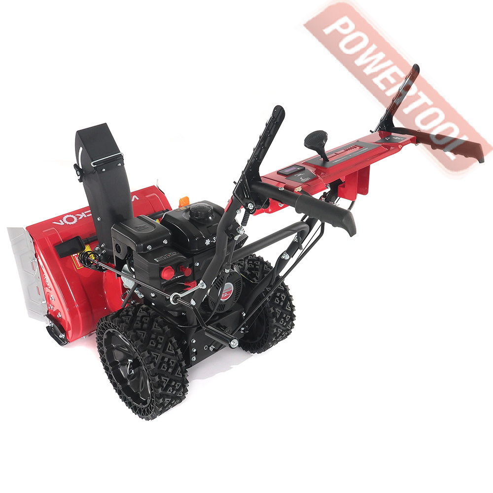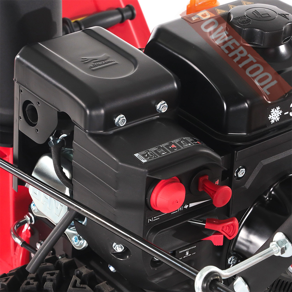 - Двухступенчатая система выброса со стальным шнеком позволит справиться даже с уборкой плотного слежавшегося снега и измельчением ледяного наста.