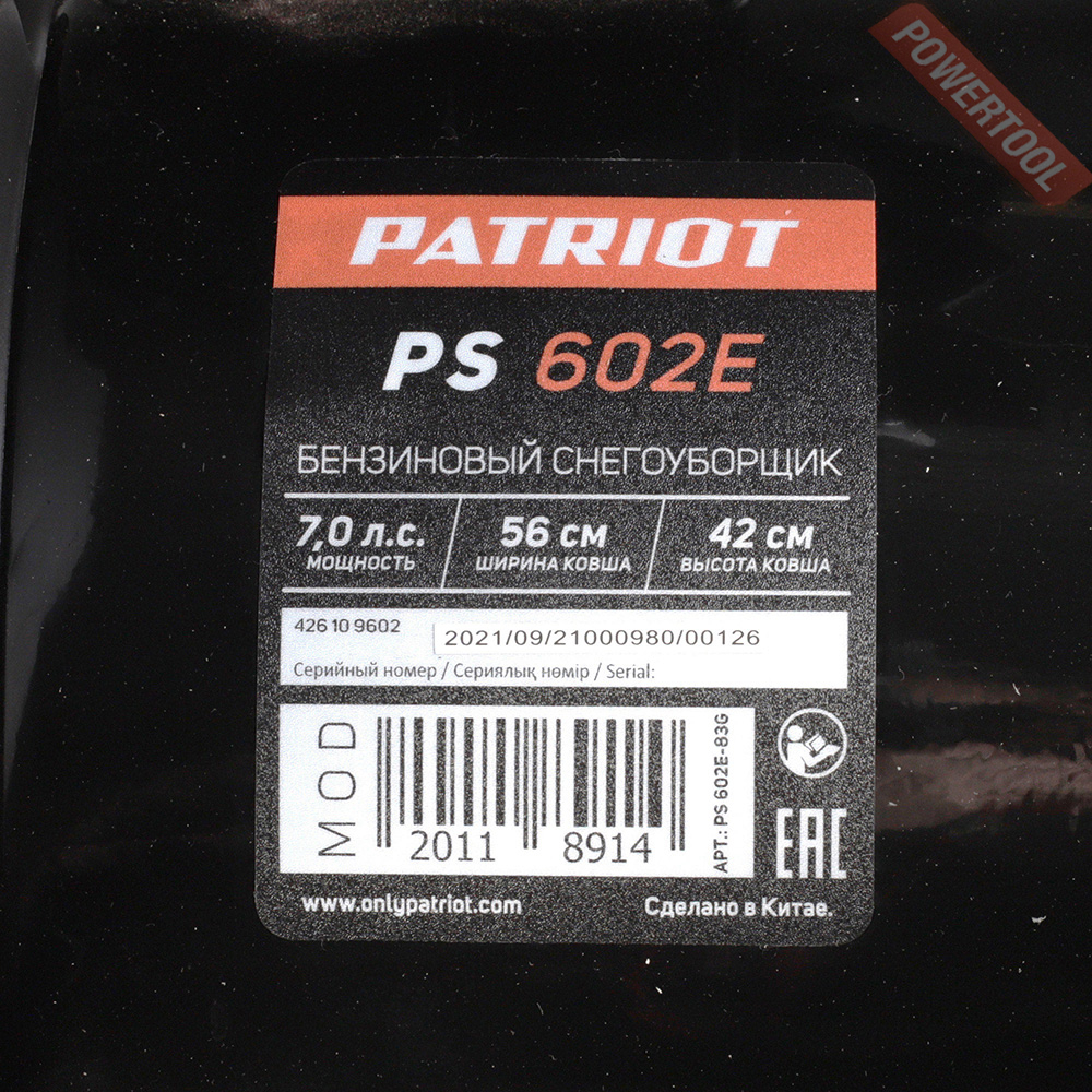 - 1. Снегоуборщик колесный самоходный PATRIOT PS 602E.