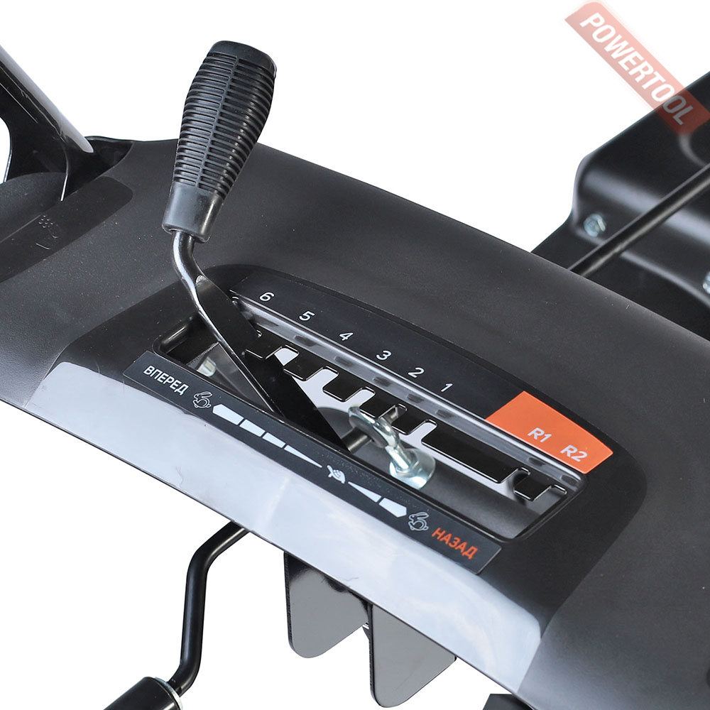 • Механический привод: 6 скоростей вперед и 2 назад. В зависимости от количества выпавшего снега трансмиссия позволяет выбрать оптимальную скорость для работы.