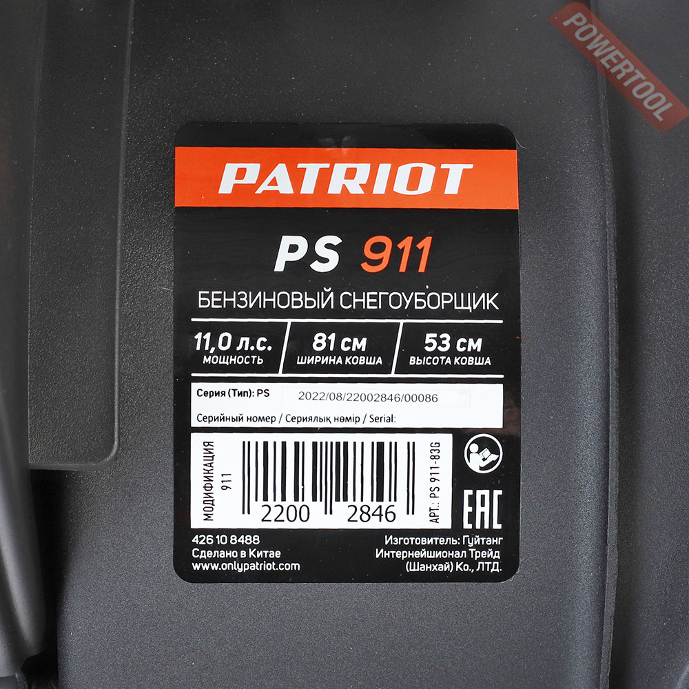 • 1. Снегоуборщик колесный самоходный PATRIOT PS 911.