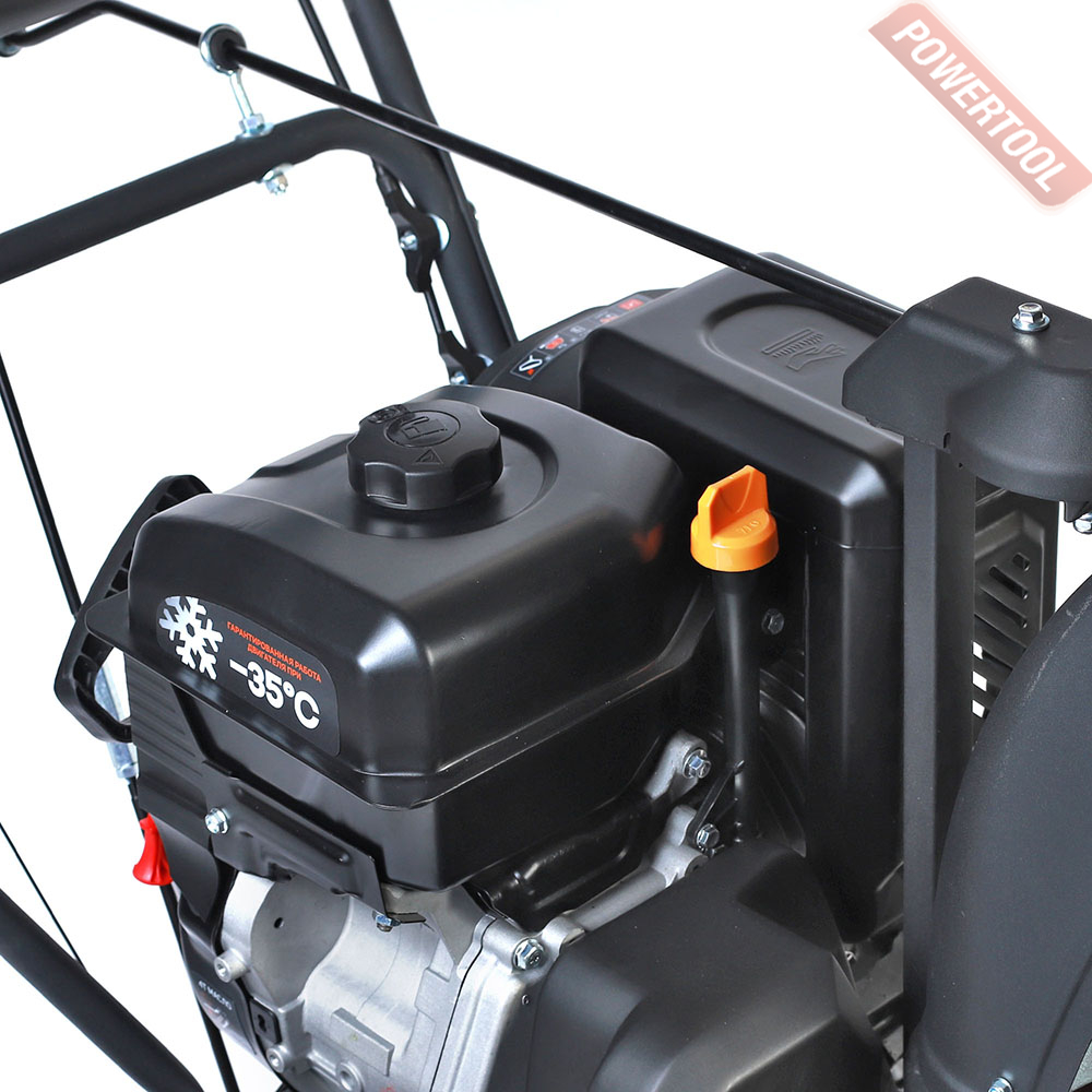 • Бензиновый 4-тактный двигатель с верхним расположением клапанов (OHV) и воздушным оxлаждением. Это надежный высокопроизводительный и, в тоже время, экономичный двигатель, который прослужит долго даже при длительной и интенсивной эксплуатации. Двигатель разработан специально для суровых российских зим и выдерживает температуры вплоть до -35 градусов.