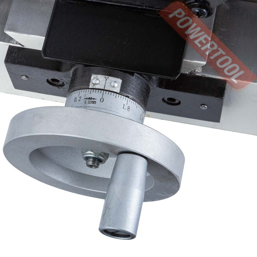 Подключение станка к электросети с напряжением 220В. Применяется для выполнения широкого спектра мелких сверлильных и фрезерных работ. Наличие микроподачи пиноли шпинделя с цифровой индикацией позволяет добиться точного контроля вертикальной подачи. Максимальный ход пиноли шпинделя составляет 68 мм. Контроль перемещений в продольной и поперечной плоскости осуществляется лимбами на штурвалах с ценой деления 0,02 мм, в вертикальной плоскости – 0,01 мм.