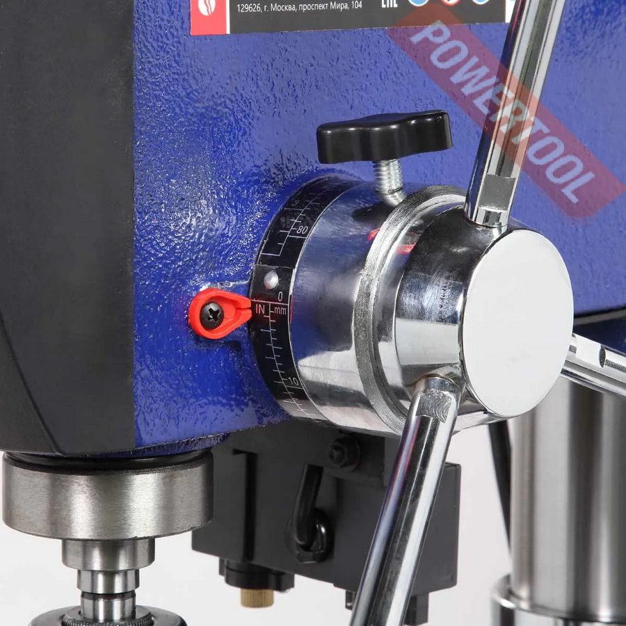 - Глубина сверления. Возможность регулировки глубины сверления, максимальный ход пиноли - 80 мм.