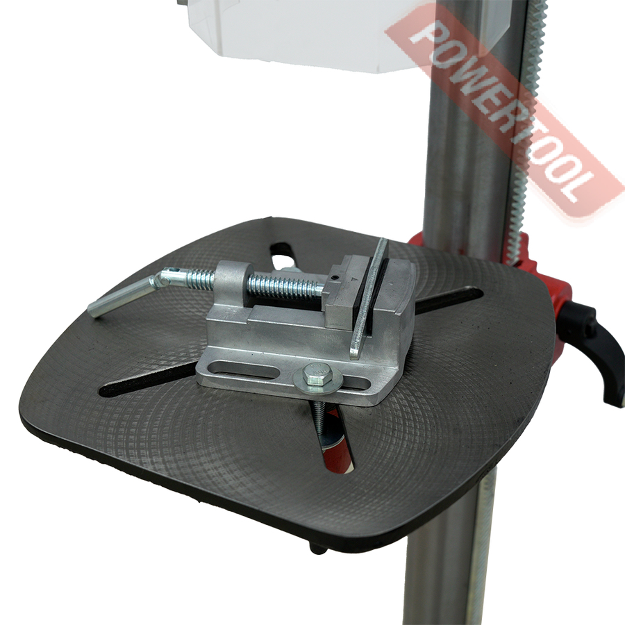 Сверлильный станок, 1125 Вт, 220 В, max диаметр сверления 16 мм, частота вращения шпинделя 240-2750 об/мин, бесступенчатая регулировка оборотов, индикация числа оборотов, посадочное сверлильного патрона B16, диапазон хвостовиков для патрона 1-16 мм, ход пиноли шпинделя 102 мм, вылет шпинделя 200 мм, шпиндель-стол 750 мм, шпиндель-основание 1240 мм, размер основания 535х380 мм, размер стола 306х306 мм, наклон стола влево/вправо 45/45 градусов, 4 Т-образных паза, подсветка рабочей зоны, лазерный целеуказатель, вес 70 кг, в комплекте патрон быстрозажимной В16 1-16 мм, защитный экран, набор инструментов, тиски.