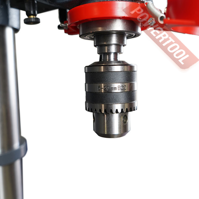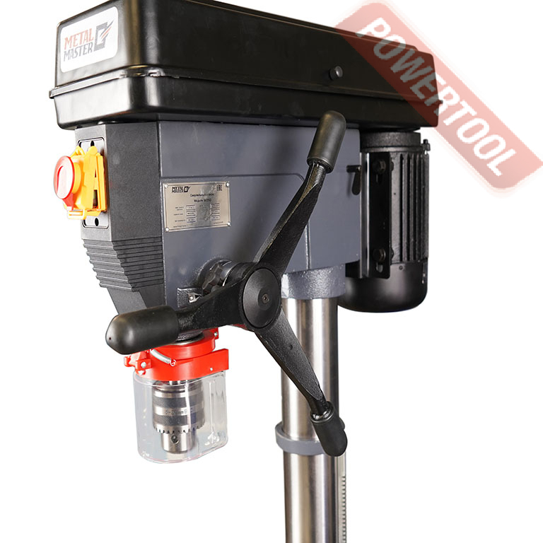 Сверлильный станок по металлу METAL MASTER M25D предназначен для сверления сквозных и глухих отверстий в черных и цветных металлах диаметром до 25 мм. На лицевой стороне сверлильной головы расположены кнопки включения и выключения станка с крышкой, которая также используется как аварийный выключатель. Станок оснащен быстрозажимным патроном с регулируемым защитным экраном, что обеспечивает безопасность для оператора.