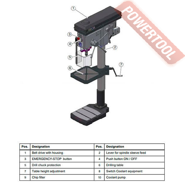 - При снятом сверлильном столе, поверхность основания станка может быть использована для установки особо высоких заготовок.