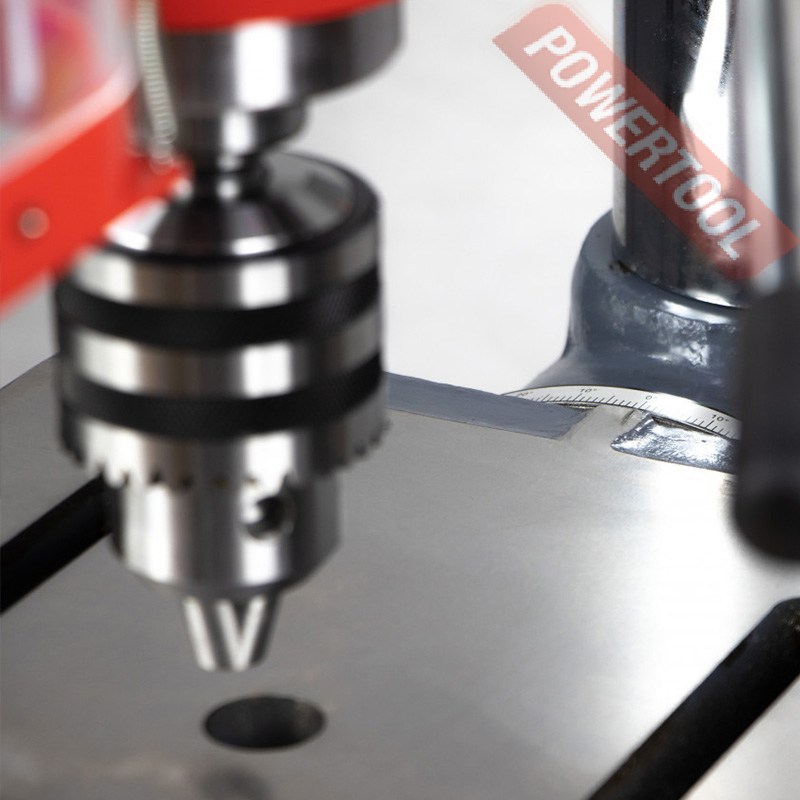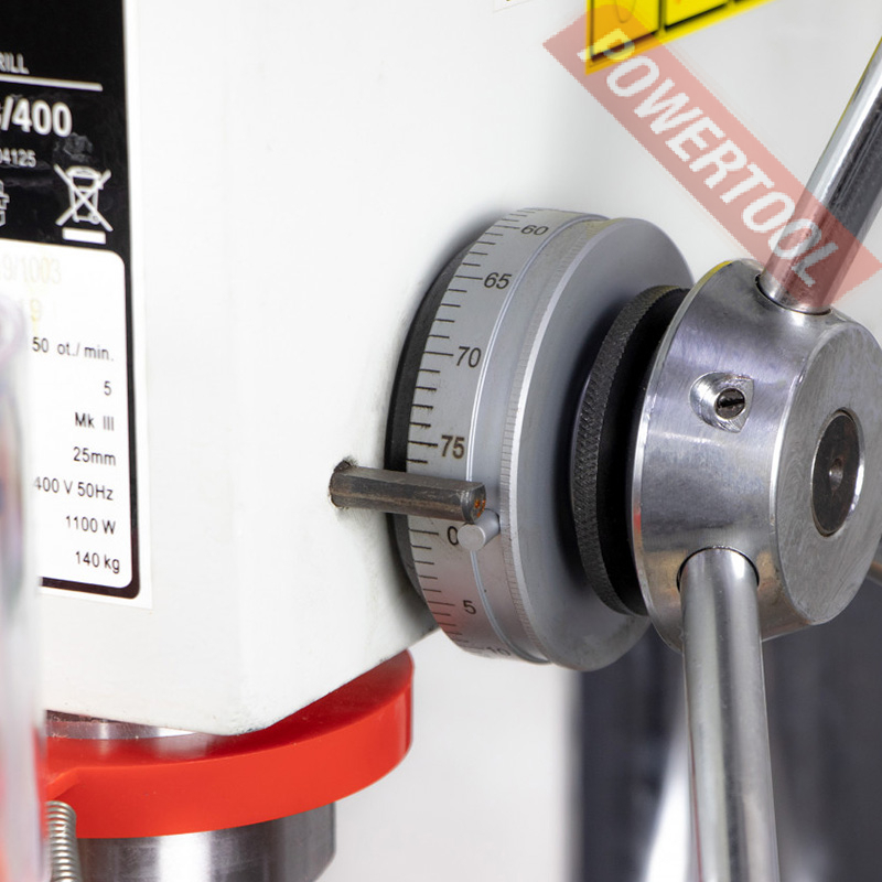 - Шкала опускания шпинделя позволяет контролировать глубину сверления не сквозных отверстий.