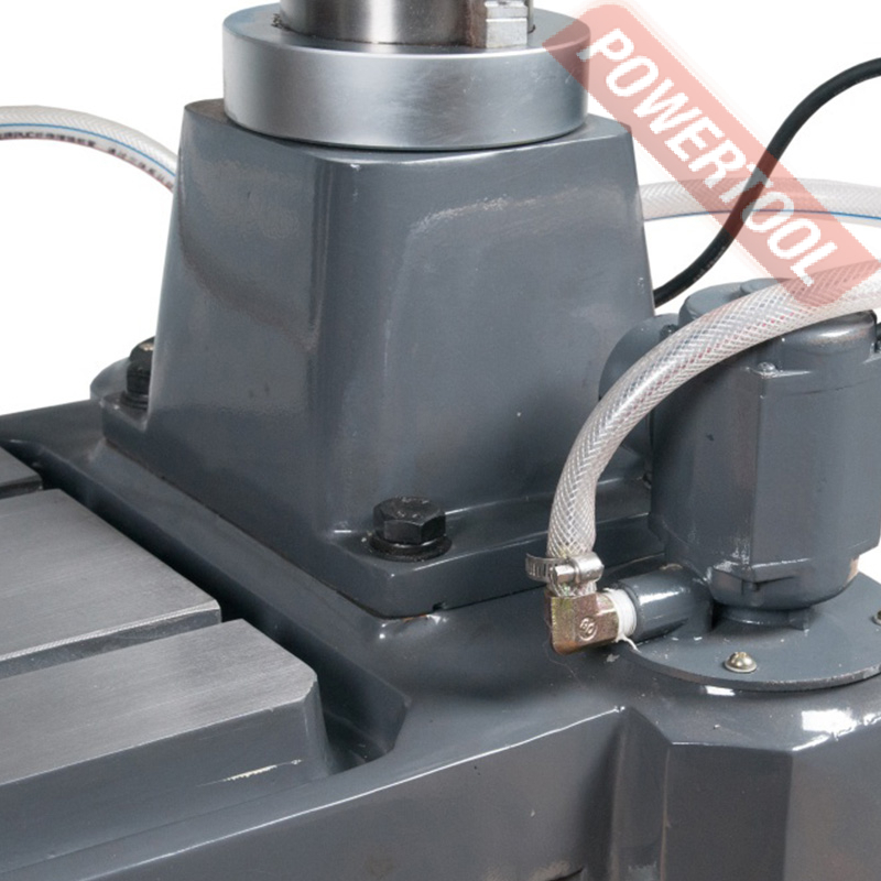 Сверлильный станок по металлу PROMA BY-3216PC/400 представляет собой практичное оборудование для серийного производства и обработки металлических деталей. Для удобства работы имеется освещение и система охлаждения. Общая высота станка достигает 1405 мм. Автоматическая подача значительно упрощает обработку деталей в промышленных объемах. Ограничение по диаметру нанесения резьбы: М24 для чугуна и М20 для стали. Прочная стальная колонна диаметром 100 мм обеспечивает жесткость конструкции и способствует передаче усилия от рукоятки к сверлу.