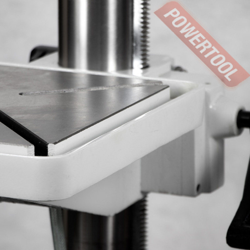 Сверлильный станок по металлу PROMA BY-3220PC/400 используется для обработки металлических деталей большого размера. Наличие прочного и широкого основания обеспечивает устойчивость при работе. При сверлении заготовок малого размера используется стол. Автоматическая подача значительно упрощает серийное производство. Ограничение по диаметру резьбы: М24 для чугуна и М20 для стали. Прочная стальная колонна диаметром 100 мм обеспечивает жесткость конструкции и способствует передаче усилия от рукоятки к сверлу. Общая высота станка: 1855 мм.