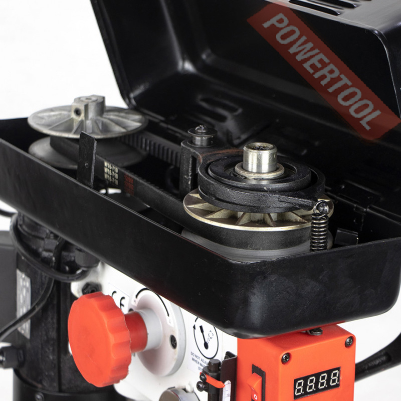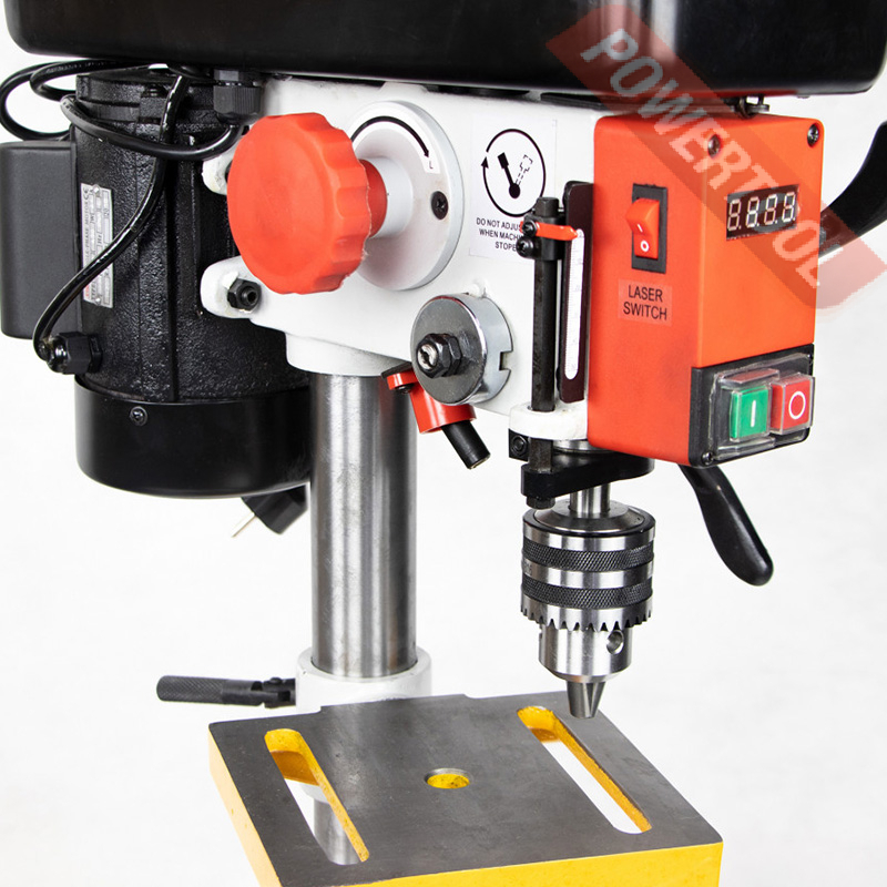Сверлильный станок, 450 Вт, 220 В, max диаметр сверления 13 мм, частота вращения шпинделя 500-2600 об/мин, ступенчатая регулировка оборотов, индикация числа оборотов, конус шпинделя КМ-2, посадочное сверлильного патрона B16, диапазон хвостовиков для патрона 1-13 мм, ход пиноли шпинделя 50 мм, вылет шпинделя 100 мм, шпиндель-стол 140 мм, шпиндель-основание 230 мм, диаметр стойки 48 мм, размер основания 310х194 мм, размер стола 175х175 мм, наклон стола влево/вправо 45/45 градусов, угол поворота стола 360 градусов, лазерный целеуказатель, габариты 400х250х630 мм, вес 32 кг, в комплекте патрон В16 1-13 мм, оправка КМ-2/В16, набор инструментов.
