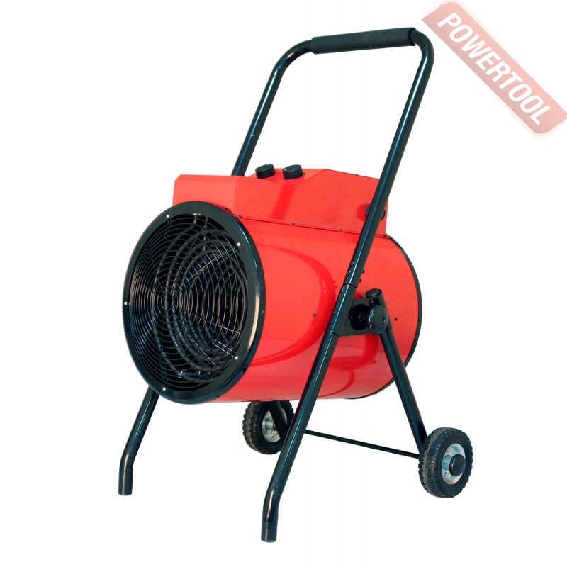 - Простота транспортировки. Колеса и удобная рукоятка позволяют с легкостью перемещать тепловую пушку по объекту.