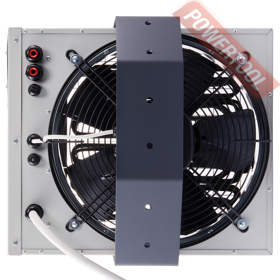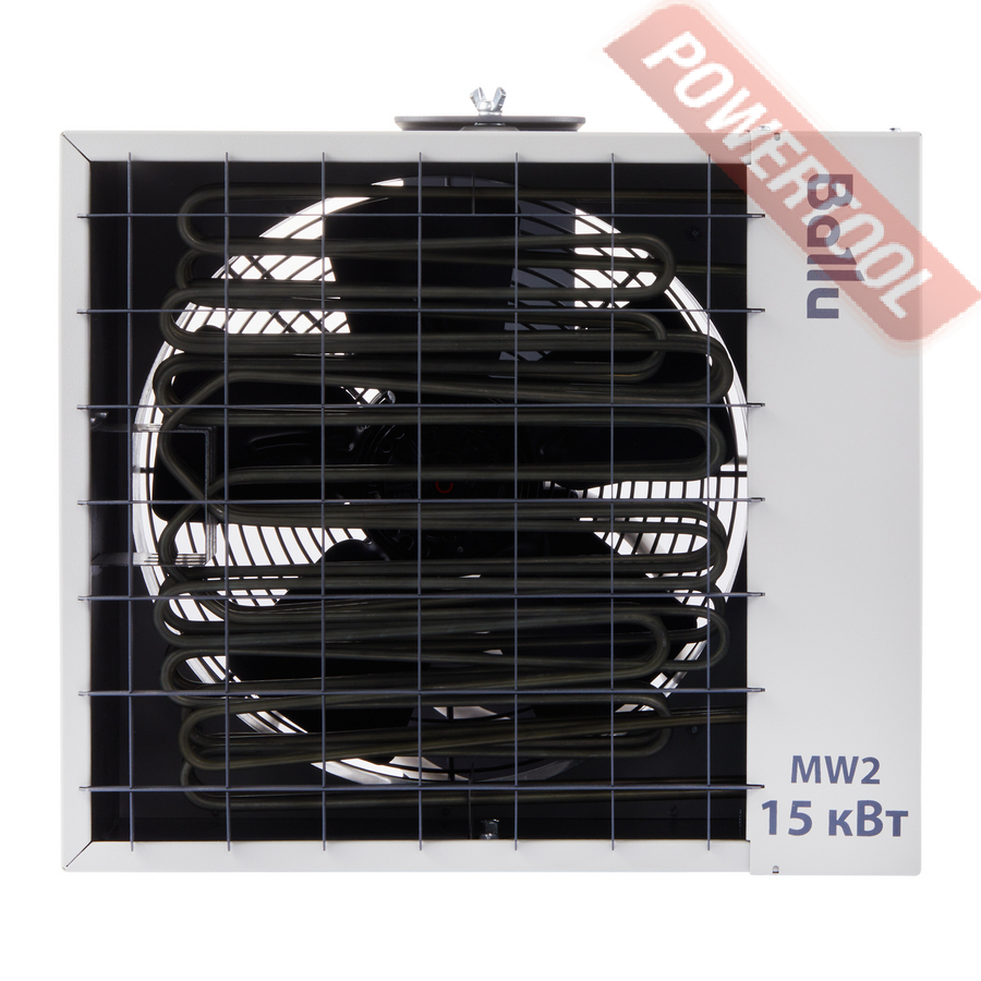 Тепловая пушка электрическая настенная, напряжение сети 380 В, тепловая мощность 5/10/15 кВт, расход воздуха 1600 куб.м/ч, потребляемая мощность 15000 Вт, 3 режима нагрева, режим вентилятора, датчик перегрева, спиральный ТЭН, регулировка угла наклона, крепление на стену, габариты ДхШхВ 340x385x440 мм, вес 17,7 кг, пульт управления с термостатом (10-30 градусов C), поворотный кронштейн, кабель для ПУ 3 м.