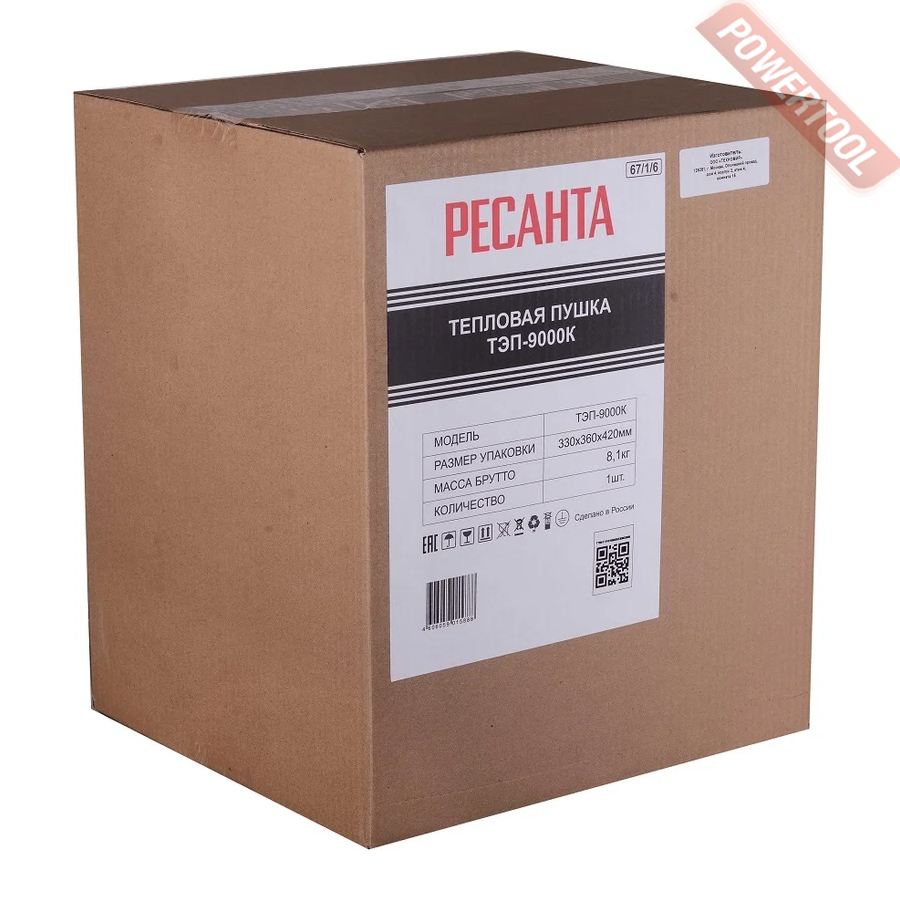 - 1. Тепловая пушка электрическая РЕСАНТА ТЭП-9000К.