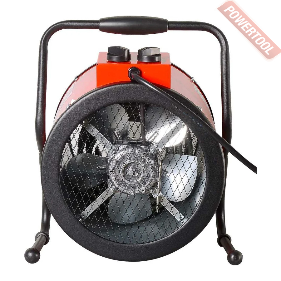 - Функция вентилятора. Аппарат способен работать как обычный вентилятор, создавая мощный направленный поток. Это позволяет использовать электрическую тепловую пушку даже летом.