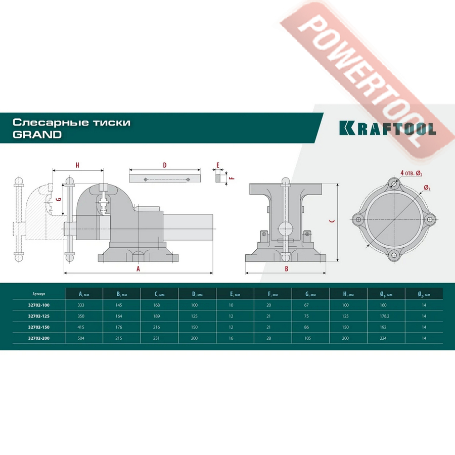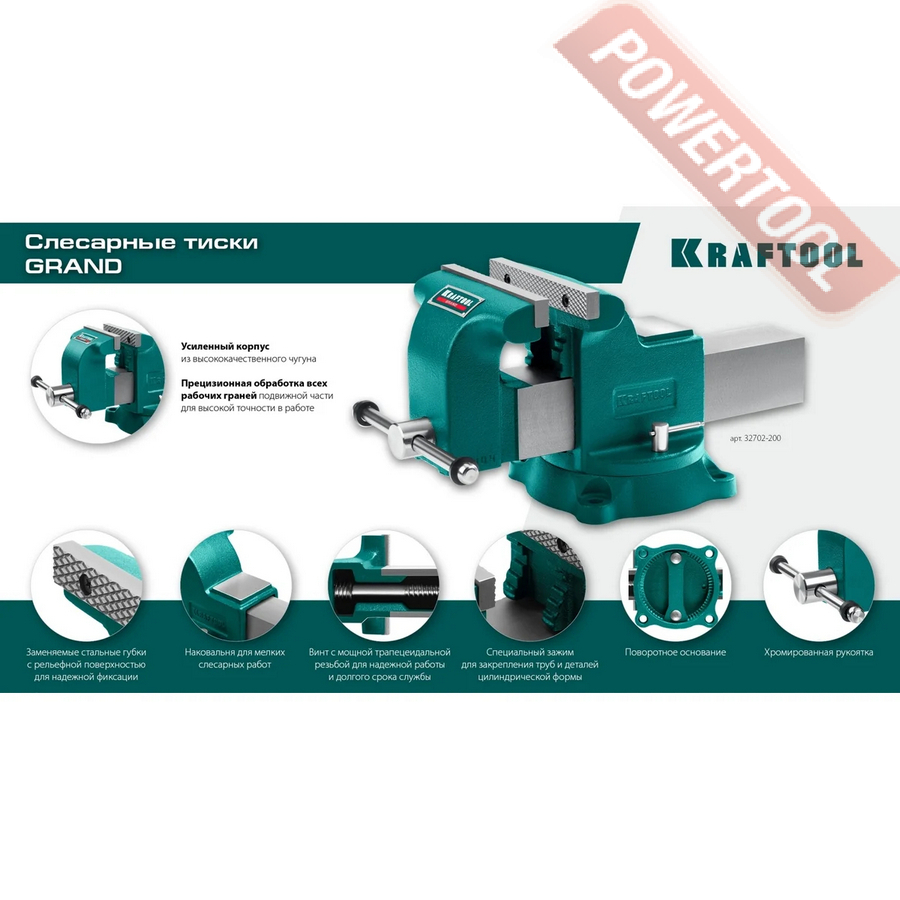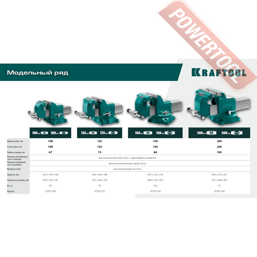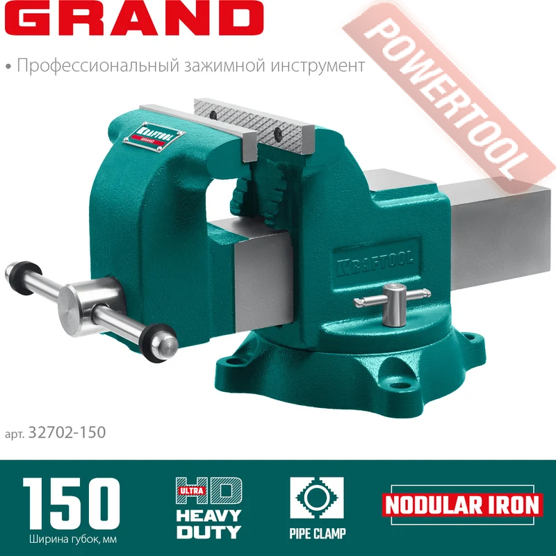 Тиски слесарные поворотные 150х150 мм KRAFTOOL Grand арт.32702-150