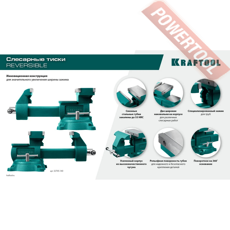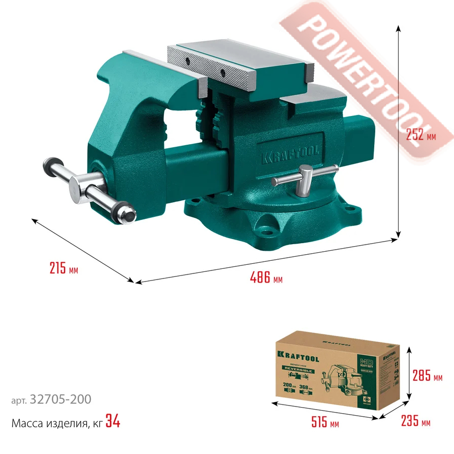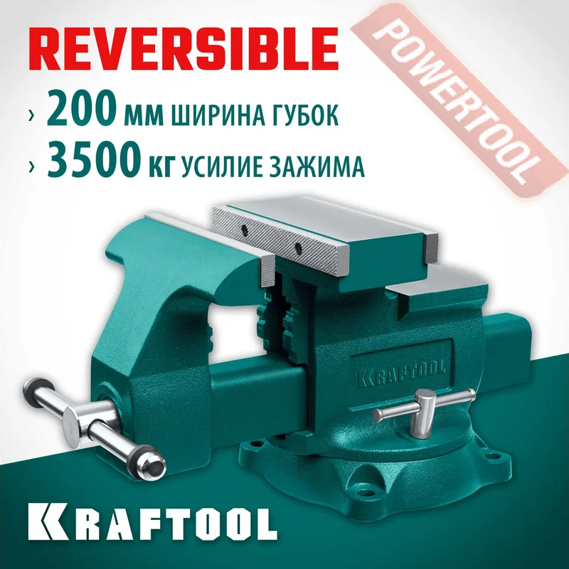 Тиски слесарные поворотные 200х368 мм KRAFTOOL Reversible арт.32705-200