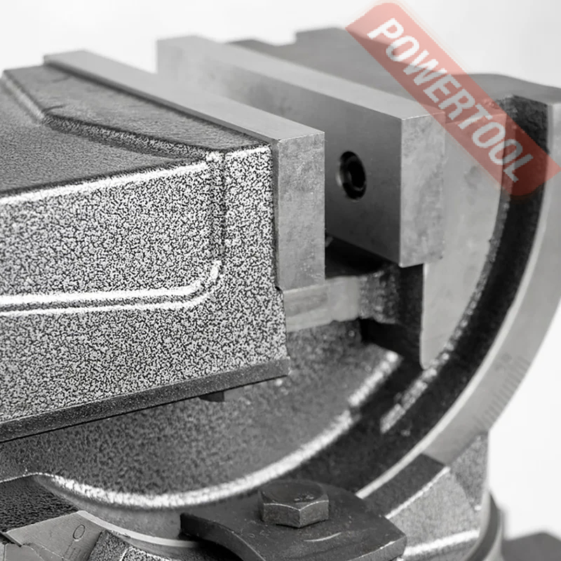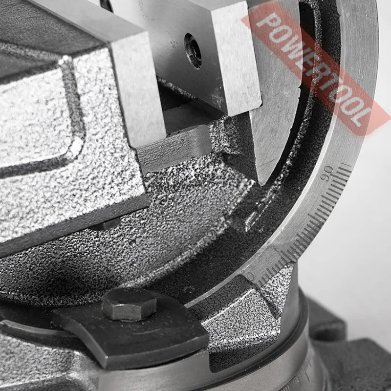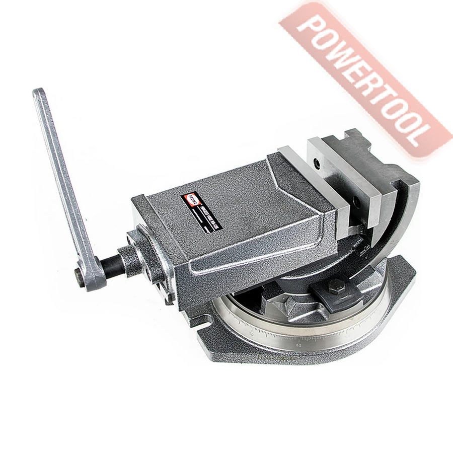 Тиски станочные угловые, ширина губок 125 мм, рабочий ход 100 мм, высота губок 45 мм, угол наклона по вертикали 90 градусов, функция поворота, вес 22 кг.