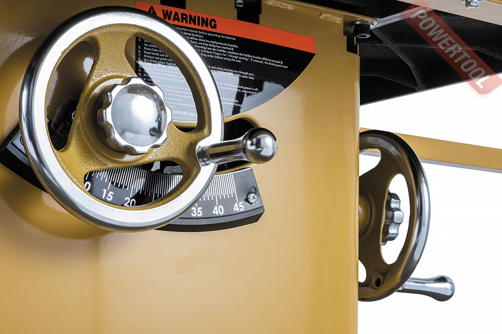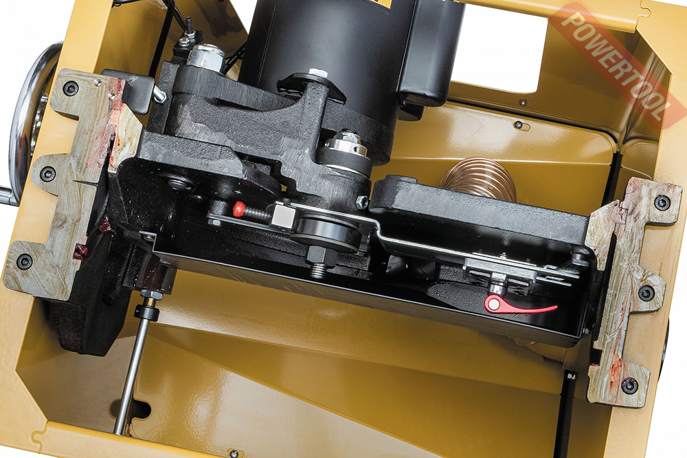 Для обеспечения качественной работы без вибраций все ответственные детали, такие как столы, пильный модуль и детали рамы выполнены из массивных чугунных отливок. Органы управления в виде массивных отполированных маховиков подчеркивают высокий класс станка.